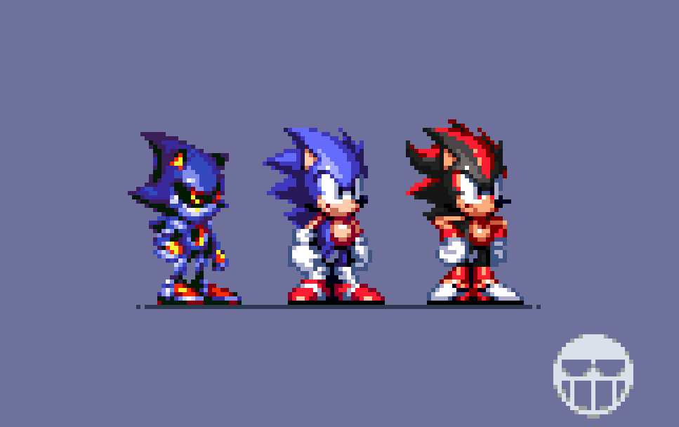 Some sonic stuff I made a few days back for fun. #pixelart #Pixel #pixelartist #SonicTheHedgehog #gameart (Shadow design inspired by @MarcusLarry627's rendition of Classic Shadow)