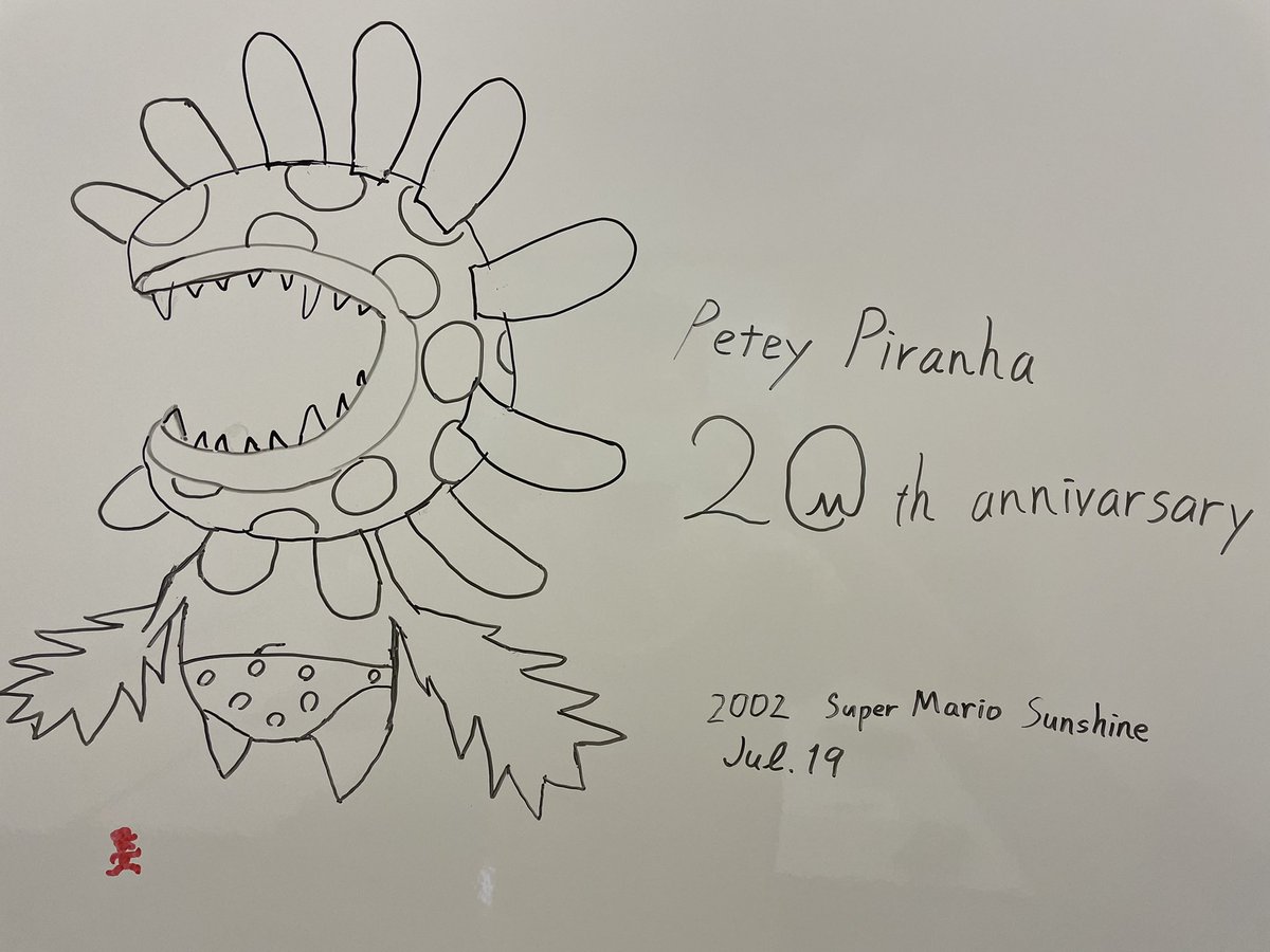 落書きでボスパックン 描いてて気づいたけど、ボスパックンも今年で20周年なんだね。 マリカツ、たぶんこれ狙ったんだな。🧐 #イラスト #illustration #ボスパックン #peteypiranha