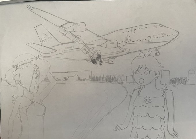 aviodromeでのルイロゼ(パイロットルイージとフォーレンダムロゼッタ様)。パイロットルイージ、実際にマリカツに登場してくれないかな。 pixiv.net/artworks/10295… #イラスト #マリオカートツアー #ルイージ #ロゼッタ #KLM #illustration #Luigi #Rosalina #aviodrome