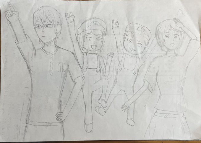 #ユアトアート の下書き 個人的にユアちゃんが1番上手く描けた。 背景を常夏のあの国にして、来週までに完成させたい意向だ。 #イラスト #illustration #FamilyPortrait