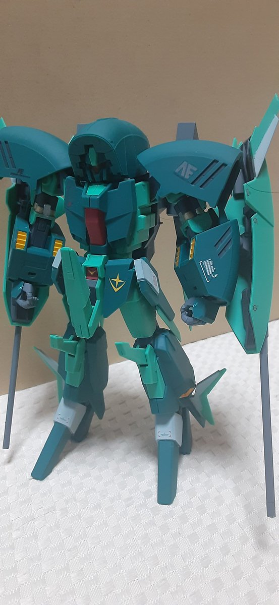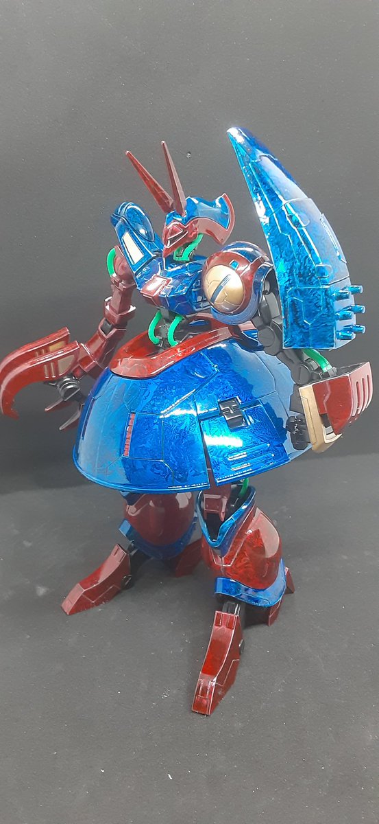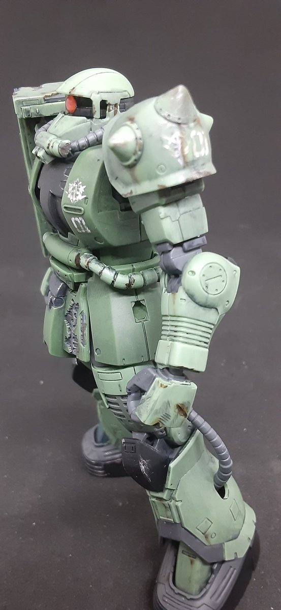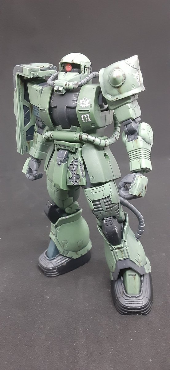 ジュアッグ完成~🎵 今回は半艶仕上げです。 意外とゴールド良いな😆 肩と鼻の横にマイナスモールド 鼻の真ん中に1mmのプラ棒着けました。 #ガンプラ #ガンプラの画像貼るとRTされると聞いて #ガンプラはどんな自由な発想で作ってもいいんだ #ガンプラ好きと繋がりたい