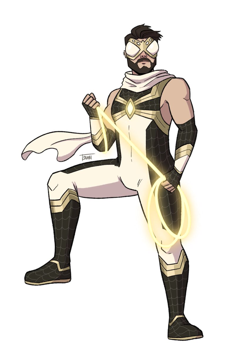 introducing my #spidersona ✨golden orb-weaver✨ through the magic gem on his chest, he gained the ability to compel people to do whatever he wants via spider-pheromones, which he channels with his magic lasso-web. definitely not inspired by wonder woman 🤧 #SpiderMan #artph