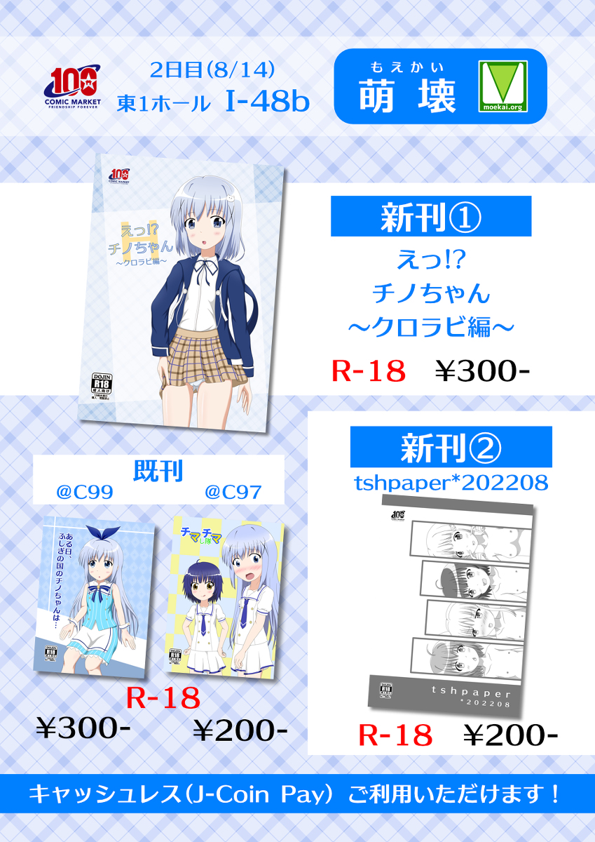 7 7 C100新刊&お品書き #チノ #香風智乃 #ごちうさ #ご注文はうさぎですか? #コミケ #C100 #中須かすみ #キョウカ(プリコネ) pixiv.net/artworks/10027… 22/08/06 15:33