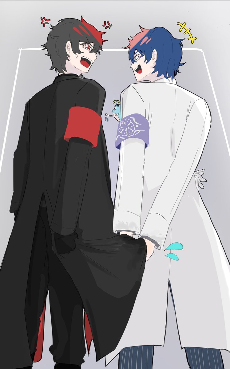 #まめねことレオス オリジナル博士と黒レオスの関係性好き~👏 これはアイロンがきいたコートでレオスに手を拭かれる黒レオス(幻覚)