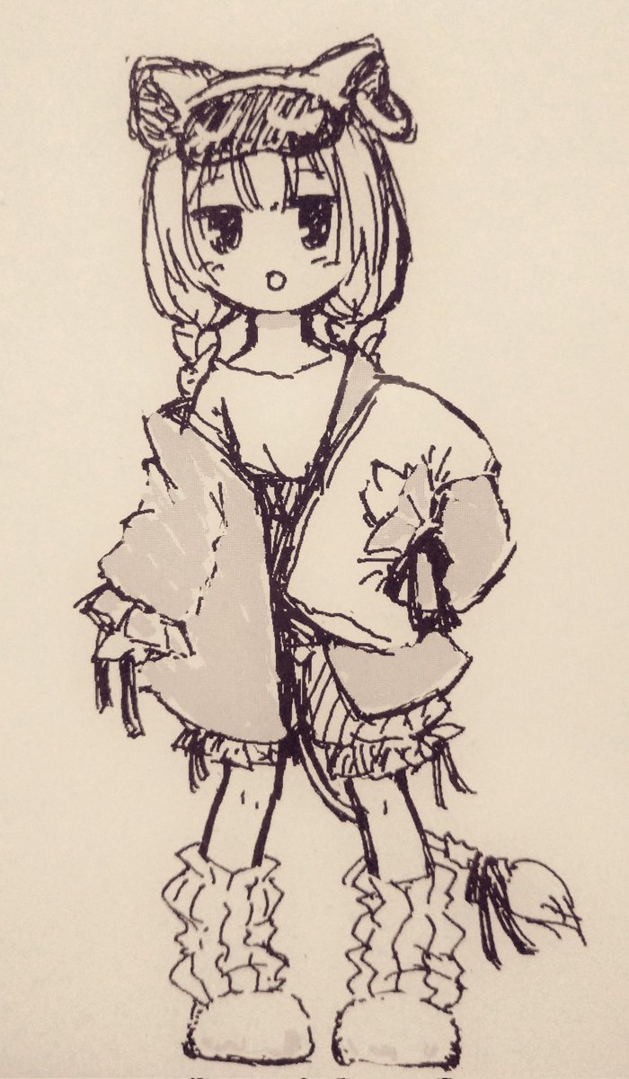 6 32 シルエットちゃんと参考にしてみた。和装メイドかなあ。髪の毛は横からみつあみで後ろでまとめてる感じかな。 #稲荷いろは #稲荷いろは新衣装 #いろは絵ほへと 23/04/02 21:17
