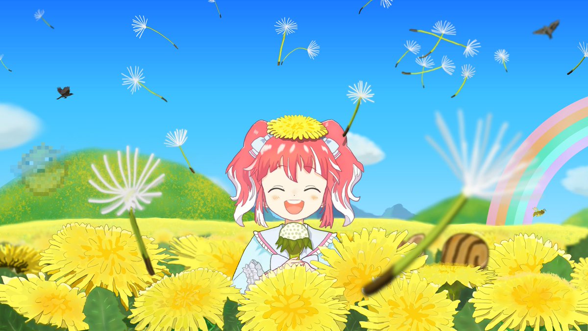 『花奏かのん、飛ぶ』 十日遅れの記念イラストです 新衣装でのさらなる飛躍を祈って、新衣装カラーのメー○ェでマイクラスタジアムの上を飛行するイメージで描きました (ちなみにマフラーは「飛んでる間、寒くないように!🌸🐿」と天使が借してくれたそうな) #かなでかのんアート #花奏かのん誕生日