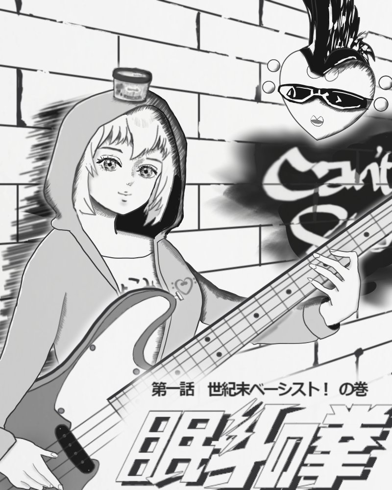 @_kanade_kanon コメントありがとうございます! 必殺技『眠斗百烈打』(みんとひゃくれつすらっぷ)で、世紀末に愛を取り戻せ! (上の絵だけだとあんまりなので、同じ北斗の拳の画風で女の子バージョンも描きました🙇 この子はベースで殴ったりしないはず!) #かなでかのんアート