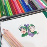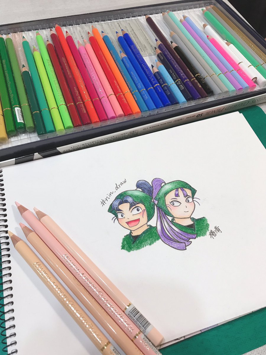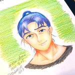 #nin_draw 食満留三郎 久しぶりに色鉛筆やりたくて我慢出来なかった(原稿は?) でもこれが限界。タイムアウト。塗り終わらなかった。