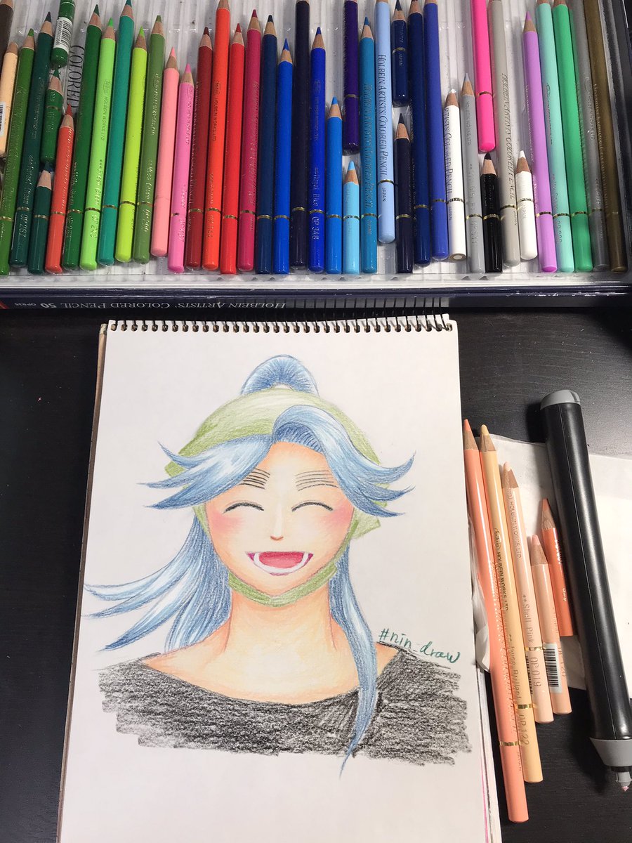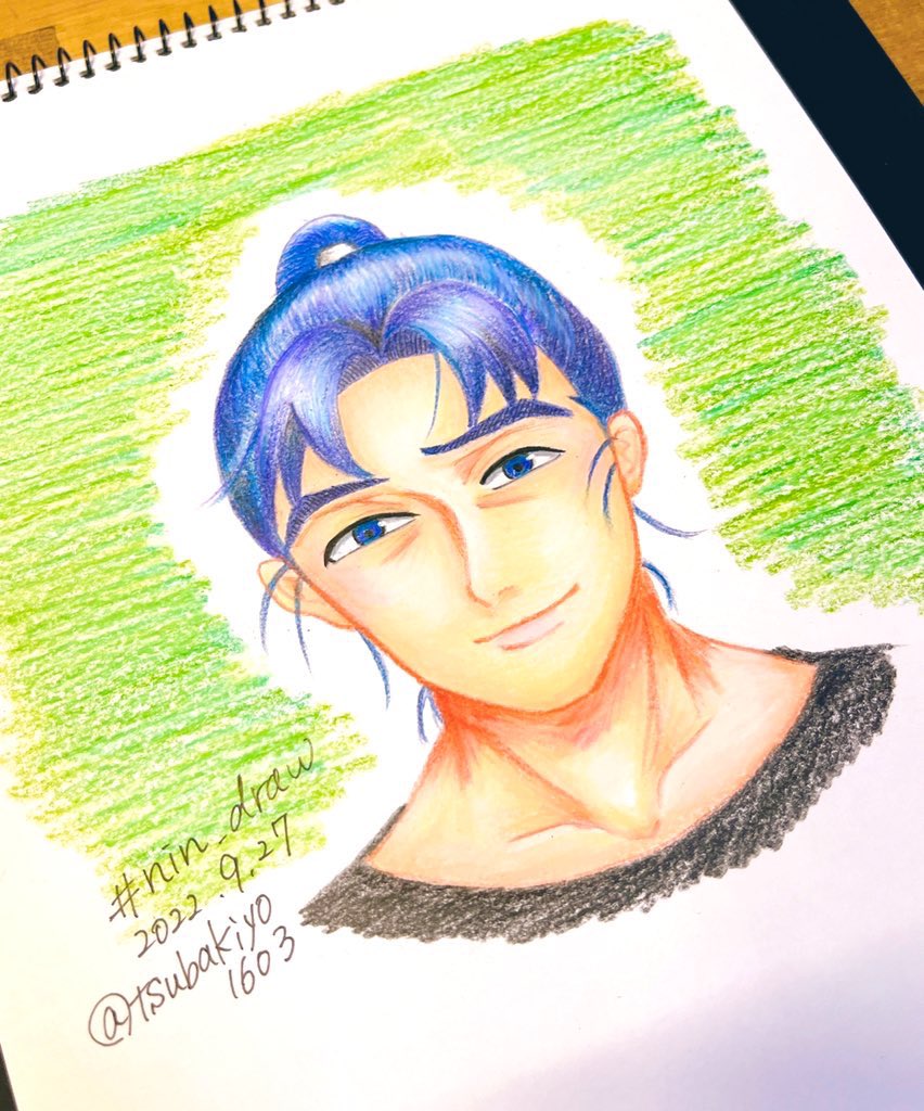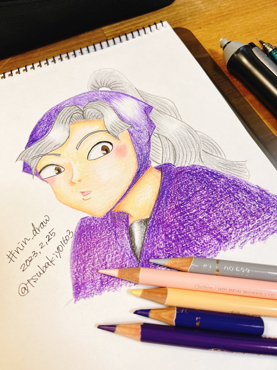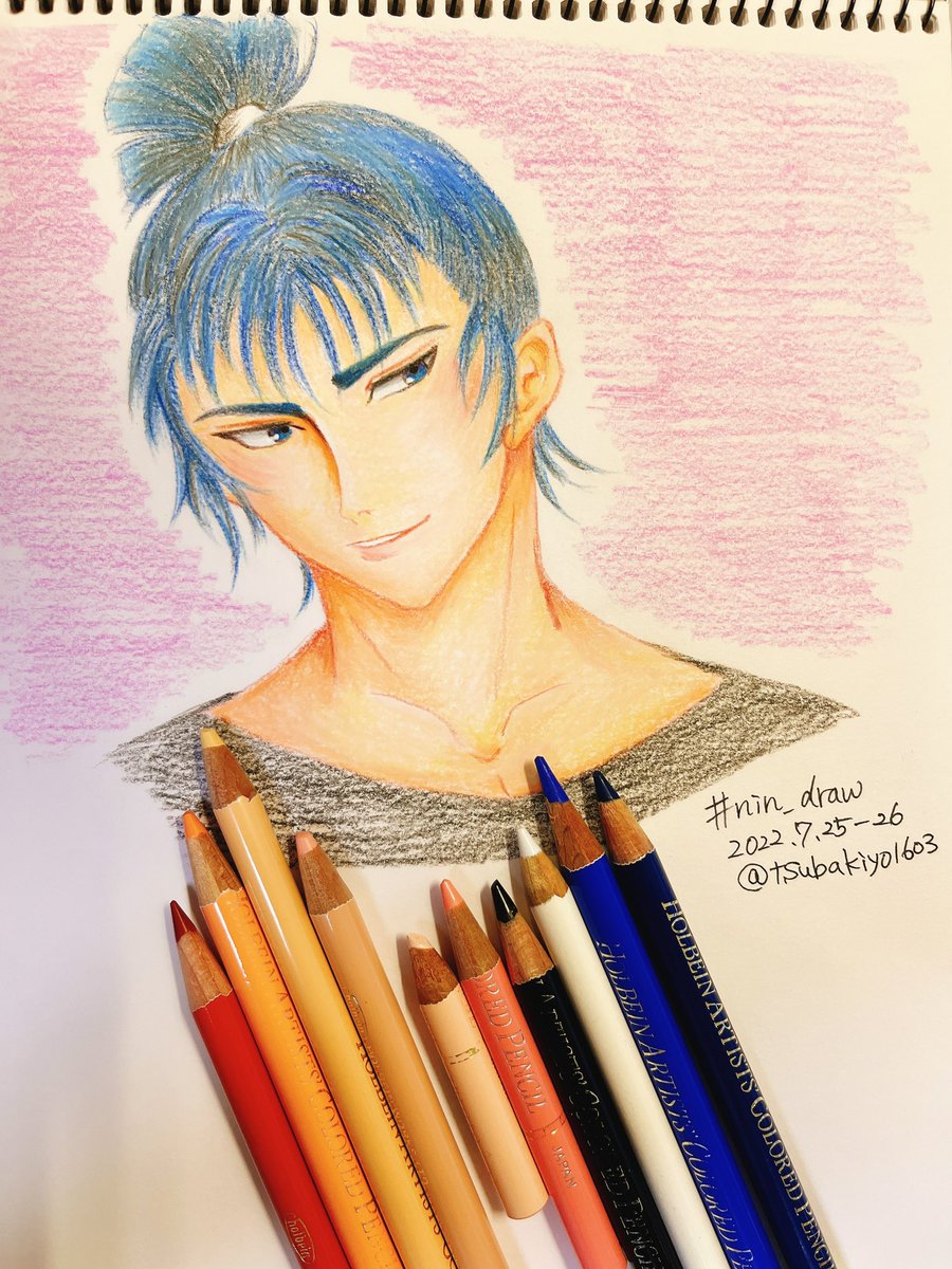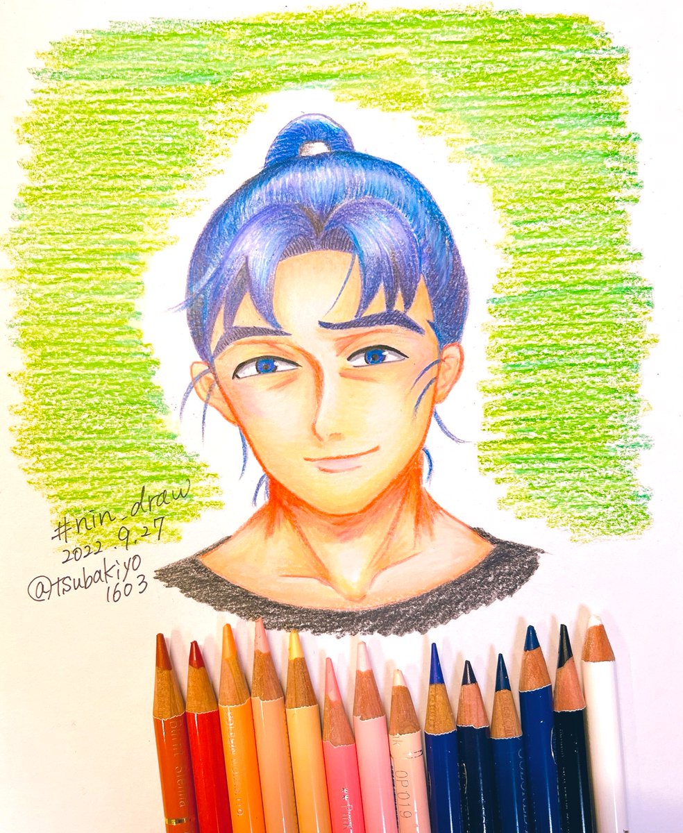 3 45 #nin_draw 食満留三郎 久しぶりに色鉛筆やりたくて我慢出来なかった(原稿は?) でもこれが限界。タイムアウト。塗り終わらなかった。 22/04/03 00:08
