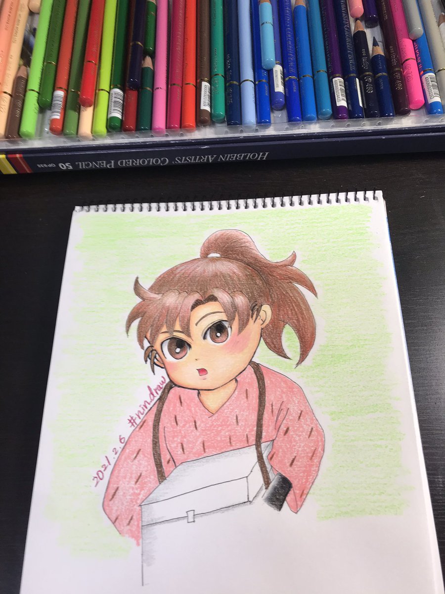 #nin_draw 食満留三郎 スキャンは色が違いすぎる 写真の方が実物に近い色 今回は使ってる色、そんなに多くないです☺️