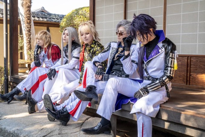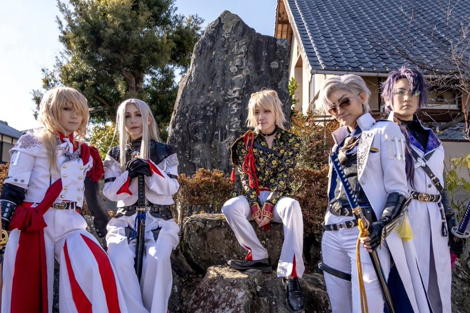 【cosplay】 刀剣乱舞 . . . 束の間の . . . 山鳥毛 @toko_g4_hs 日光一文字 ヤナ 姫鶴一文字 @oojitouko 南泉一文字 @tinaakako 一文字則宗 @ao_aoyi . 📷@927_123 . #備前福岡一文字併せ