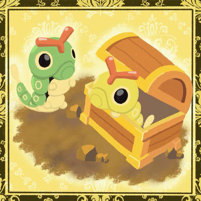 #虫ポケの日 #虫ポケモンの日 キャタピーは輝く宝物(輝くリサーチデイのファンアートです)