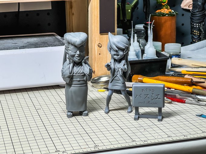 ワンフェス2023冬参加します! 新作は「スナックバス江」より、バス江ママと明美のセットになります。看板付きです。 取り急ぎご報告まで。価格などの詳細はまた後ほどツイートさせていただきます! #WF2023W #ワンフェス2023冬 #スナックバス江