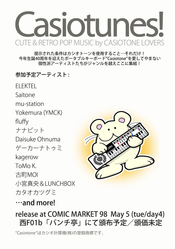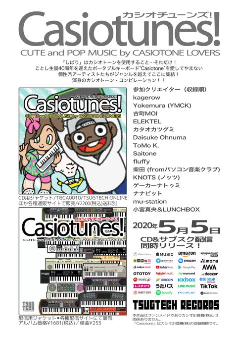 #エアコミケ (本来なら)4日目F01bで出展の"Casiotunes!"コンピレーションCD!たいへん豪華で個性的なメンツでリリース!BOOTHで通販受付中です! tsugtech.booth.pm