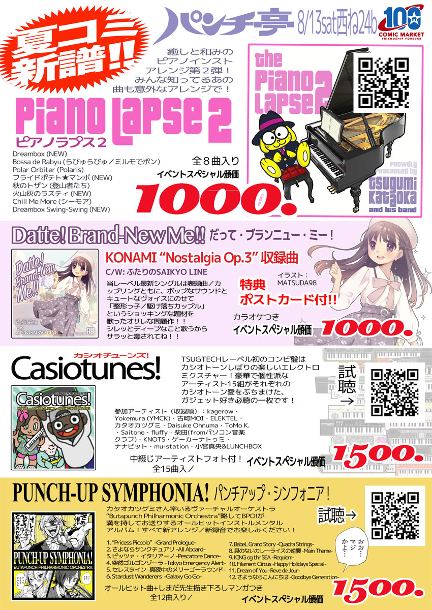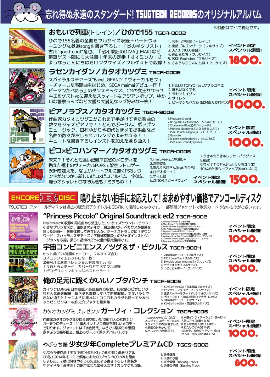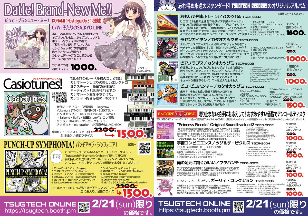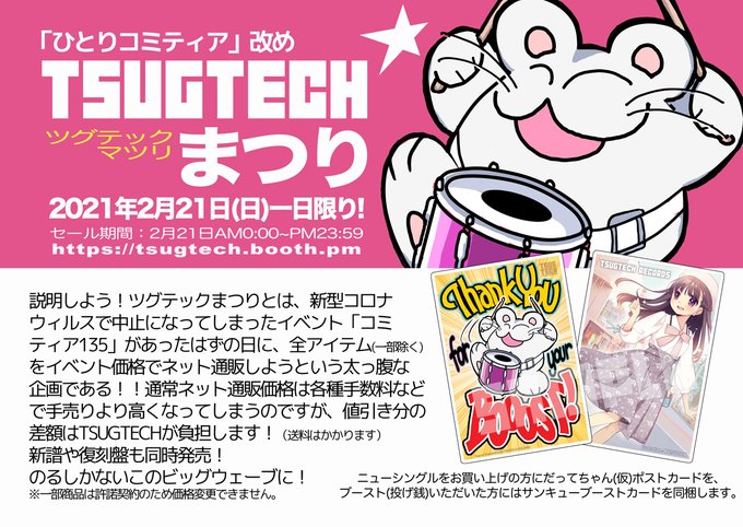 「ツグテックまつり」本日限りイベントの手売りと同じ価格に下げてネット通販暴走中!!新譜「Datte〜」やお手頃プライスの復刻版も! 価格デストローイ!tsugtech.booth.pm #エアコミティア