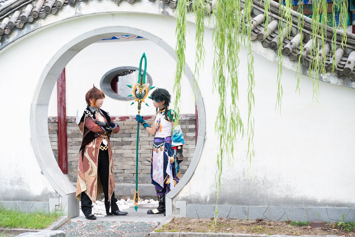 [原神/コス] 鍾離:沙羅那さん(@syaranana) 魈:つぐみん 📷:ヒダカさん(@hidaka0000) ロケ地:燕趙園様