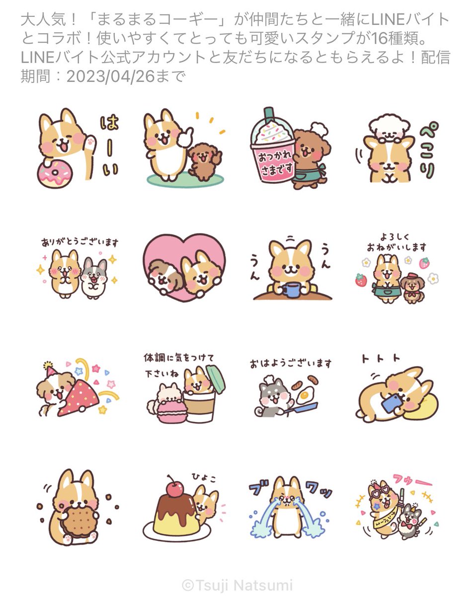 「まるまるコーギー× LINEバイト」 無料スタンプがリリースされました! line.me/S/sticker/27794 LINEバイト公式アカウントを友だち追加すると無料でDLできます! 配布期間:2023年4月26日まで