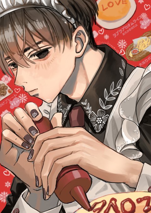 新人メイド君にケチャップ文字を書いてもらおう! #創作男子 #イラスト
