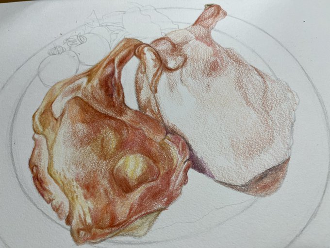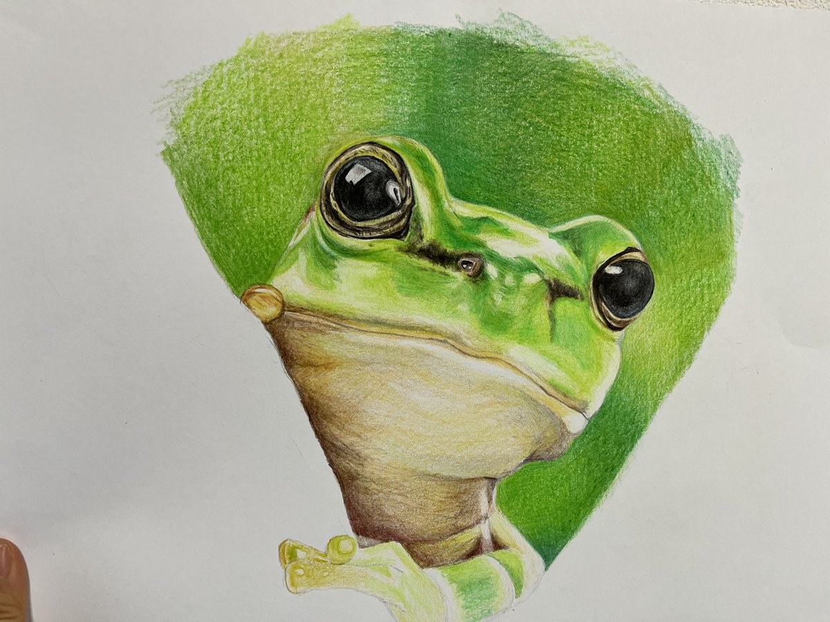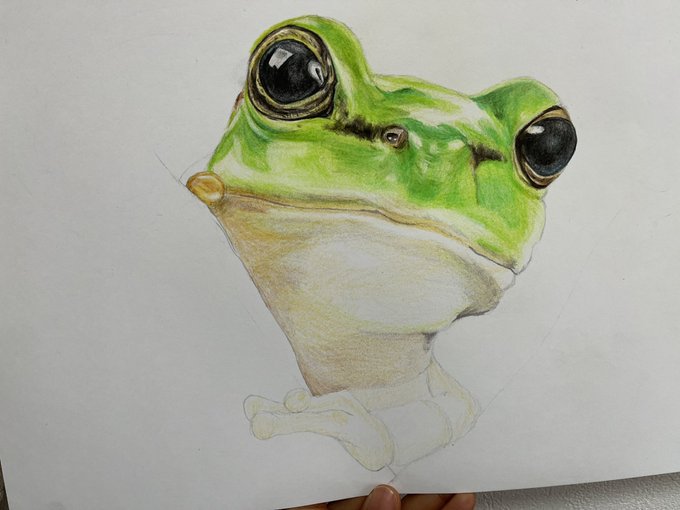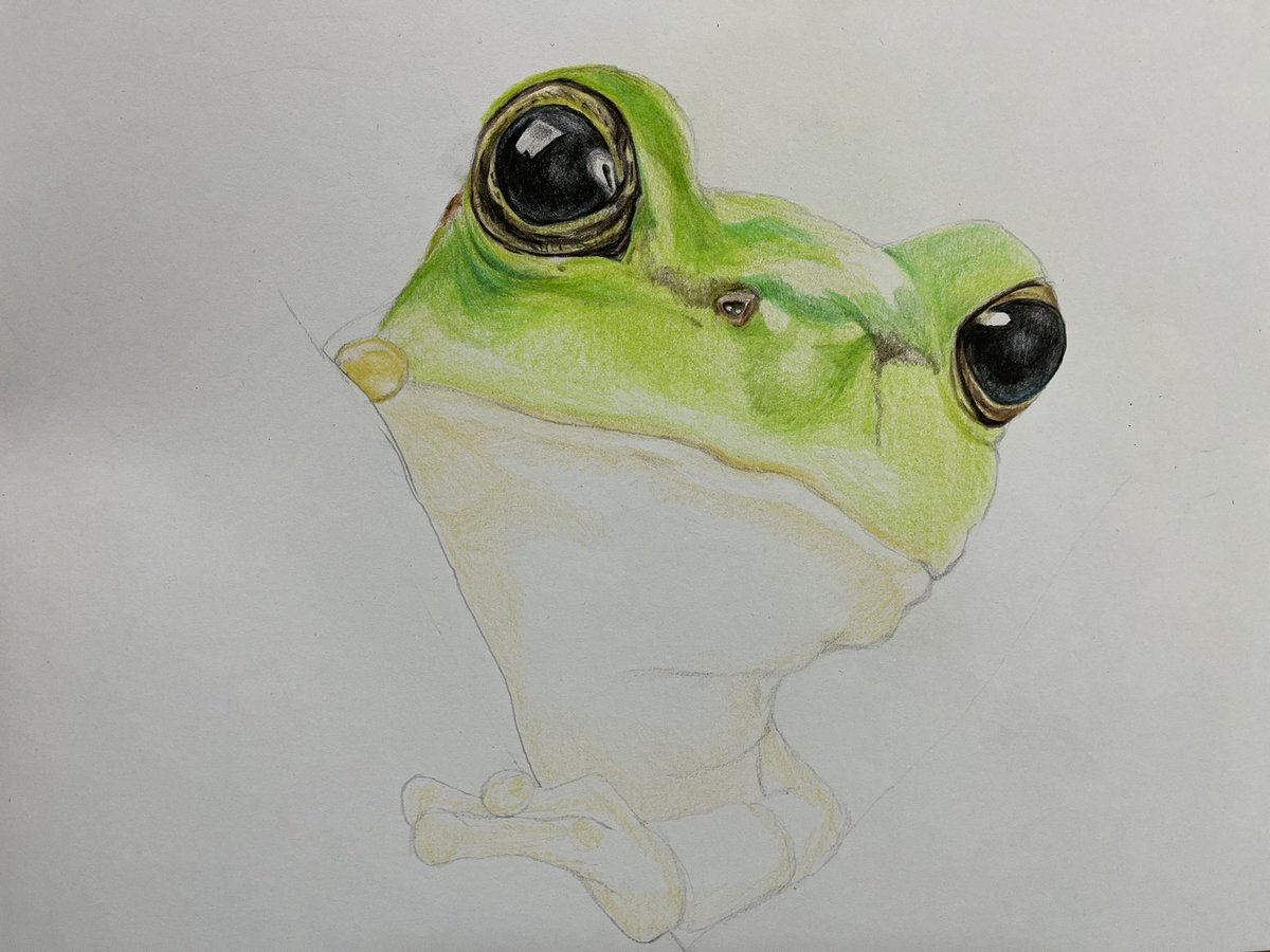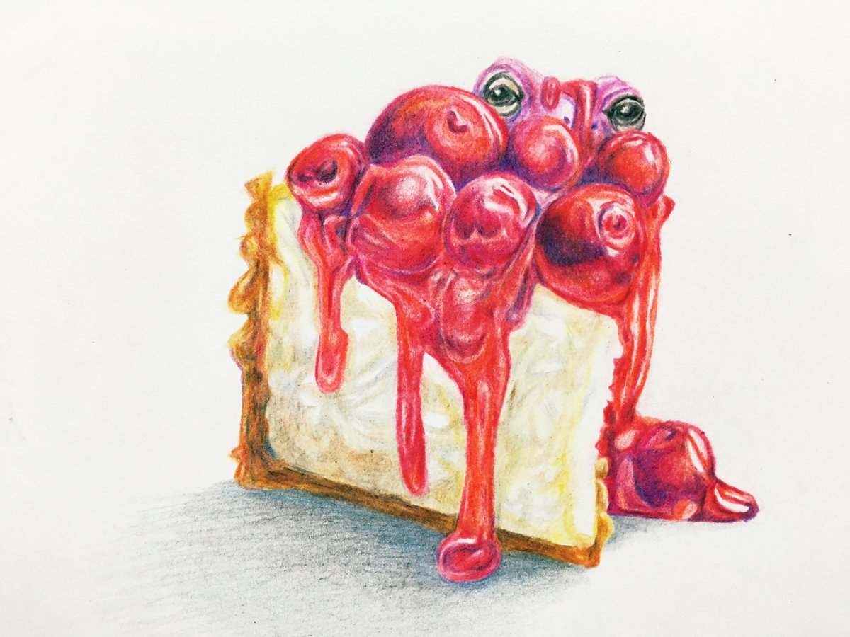 塗り塗り途中。 隠れてる🐸が出てきましたよ笑 #イラスト #色鉛筆イラスト #食べ物イラスト #色鉛筆画 #カエル #ケーキ #coloredpencildrawing #illustration