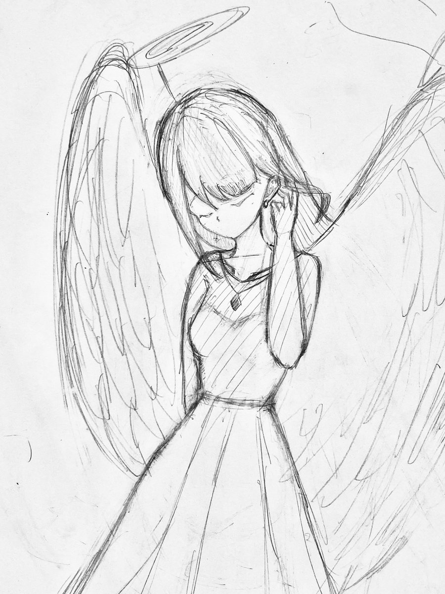 少しポーズ変更した天使 ここから線画…辛いよーー!! #イラスト #イラスト好きさんと繋がりたい #イラスト初心者 #絵描きさんと繋がりたい