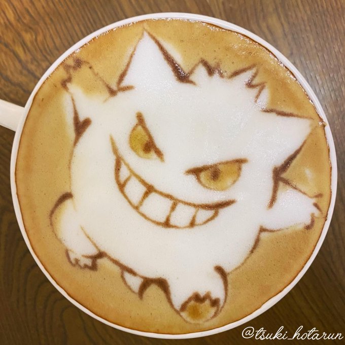 4 19 るんるんラテアート☕️ ゲンガー😈 旦那氏が好きなゲンガー描いてみた𖠚ᐝ #るんるんラテアート #ラテアート #ゲンガー #ポケモン 21/12/01 23:03