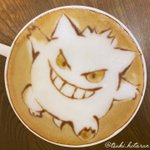 るんるんラテアート☕️ ゲンガー😈 旦那氏が好きなゲンガー描いてみた𖠚ᐝ #るんるんラテアート #ラテアート #ゲンガー #ポケモン