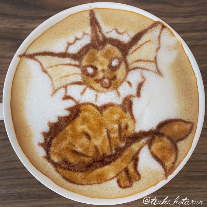 るんるんラテアート☕️ シャワーズ𓈒 𓂂𓏸 色塗りの珈琲が思ってたより濃くて日焼けしちゃったシャワーズちゃんになっちゃった- ̗̀ ( ˶'ᵕ'˶) ̖́- ブイズ難しいよー! #るんるんラテアート #ラテアート #シャワーズ #ポケモン