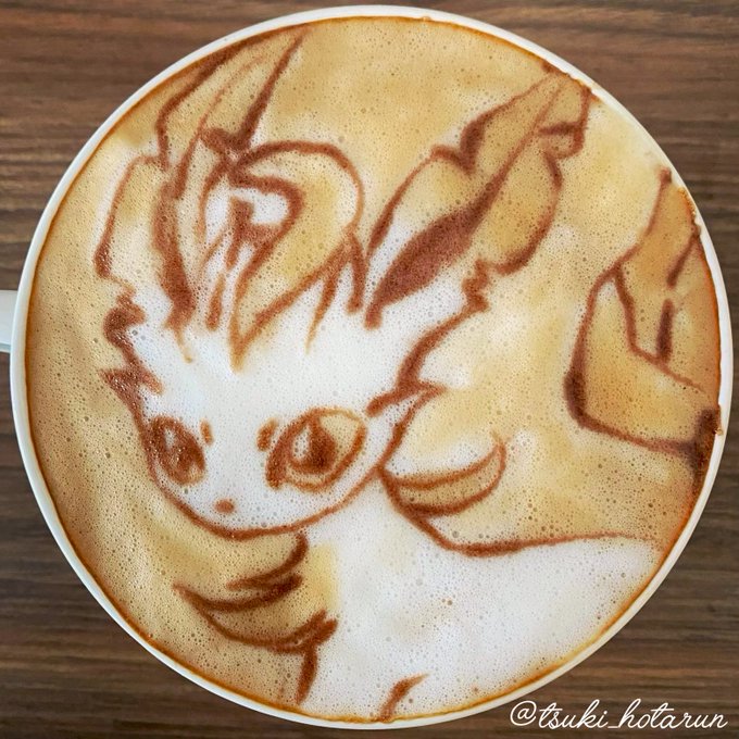 5 24 るんるんラテアート☕️ リーフィア🌿 むずかしかったです まる #るんるんラテアート #ラテアート #リーフィア #ポケモン 22/04/21 12:01