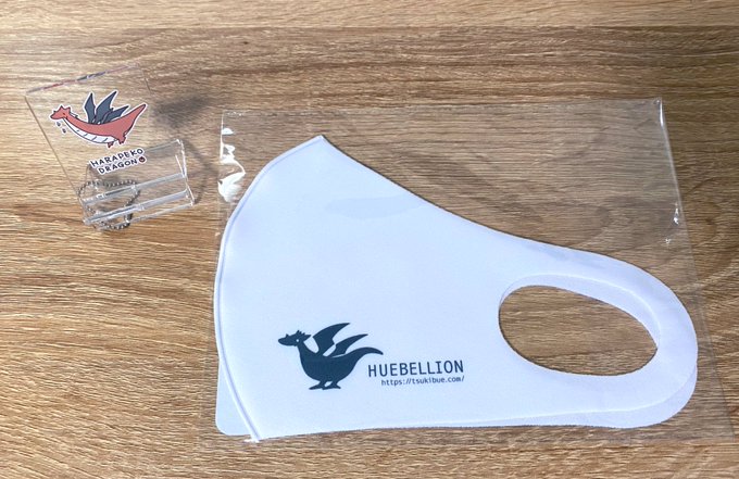 あとヒュー柄のグッズもあります どちらも各400円 マスクの方は、FANBOXサポーターさんは無料で差し上げますのでご希望の方はスペースでお声がけください〜 ポリエステルなのでエチケット用とか室内用ですね #COMITIA136