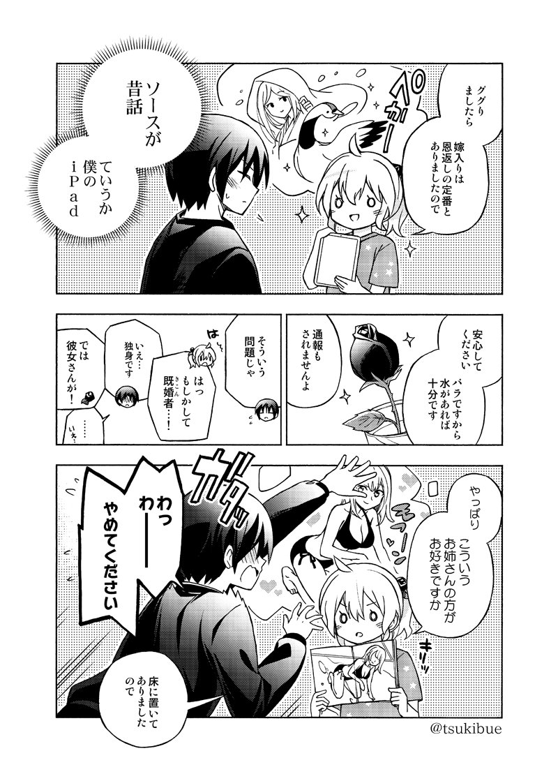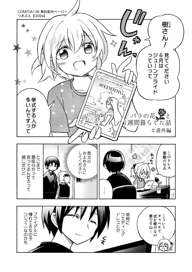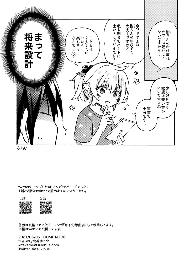 Twitterに中身全部貼ってますがサイトにもアップしたのでビューワー直リンクを… 天使の少年2人のマンガ(9P)です tsukibue.com/comic.html#sir… #エアコミティア134 #エアコミティア見本誌