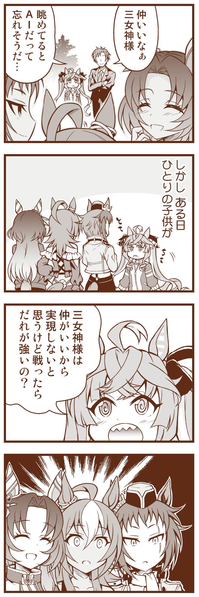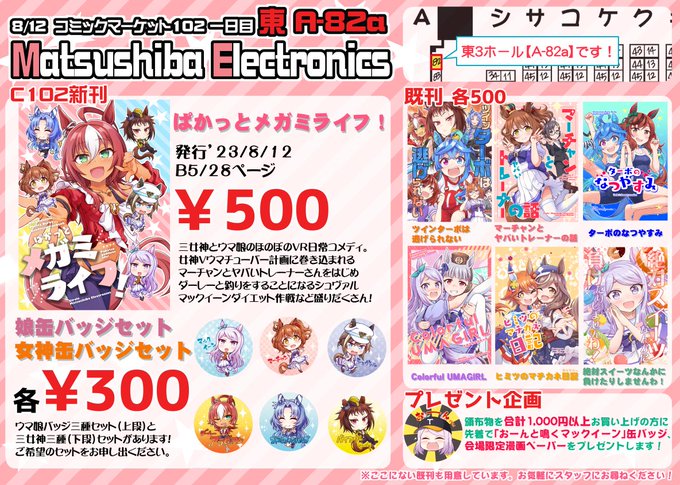 C102新刊は三女神とウマ娘たちのほのぼのVR日常コメディです! 頒布スペースは【1日目 A-82a Matsushiba Electronics】 委託書店はメロンブックスさんです よろしくお願いしますっ! 🍈melonbooks.co.jp/detail/detail.…