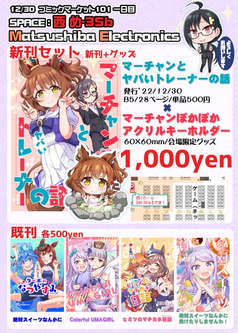 C101新刊はマーチャンとトレーナーさんのゆるふわ固め濃いめダブルマシマシ日常コメディです 頒布スペースは【1日目 め-35b Matsushiba Electronics】委託書店はメロンブックスさんです よろしくお願いしますっ! 🍈melonbooks.co.jp/detail/detail.…