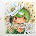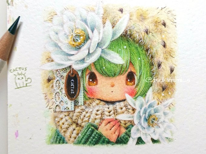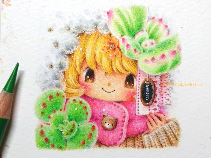ミニ原画その2です~😊 熊童子という多肉さんモチーフです🐻 #色鉛筆