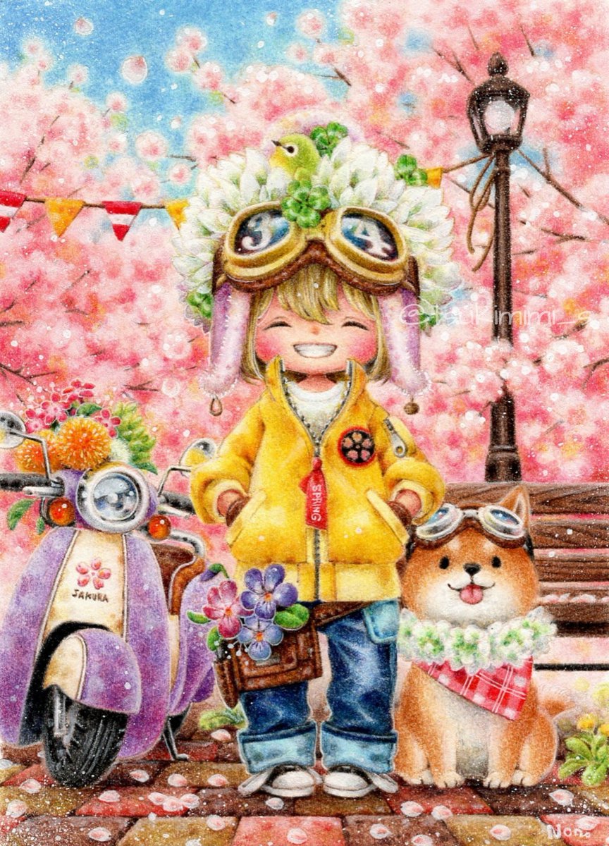 春風を切って🌸🛵💨完成~✨ #色鉛筆