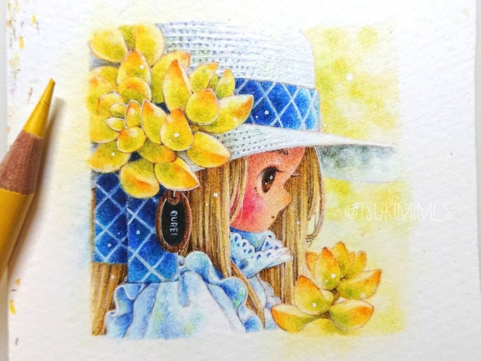 ミニ原画できました!😊 モチーフは多肉植物「黄麗」 #色鉛筆