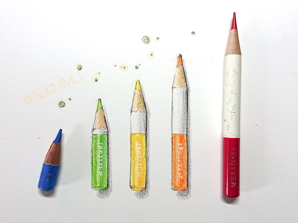 こんにちはです!今日は日頃お世話になってる色鉛筆を描いてみた☺️ 左の小さい子は十数年前に買った初めての色鉛筆で、もう削れないけど捨てられない思い出の品です✏️✨