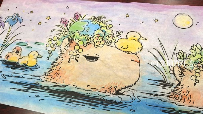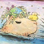 3 94 とある依頼でカピバラさんを描きましたぁ😁 和紙に水彩で描くの難しかった、でも楽しかった✨ 22/08/28 18:04