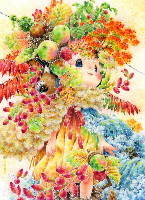 141 1109 完成しました!✨秋を纏うイラストです🍁 #色鉛筆 22/09/25 12:09