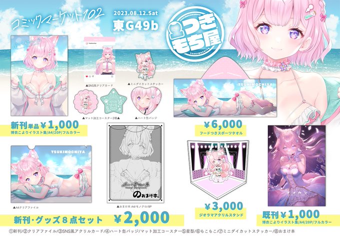 【#C102 お品書き】 8/12(土)東G49b「つきもち屋」 夏コミのお品書きです! ホロライブ博衣こよりちゃんの新刊、新刊セット、新作グッズを作りました! 新刊&新刊セットは制限無しですがグッズは1限スタートの予定です。 どうぞよろしくお願いします✨ 書店委託はこちら 🍈 x.gd/H4fUM… twitter.com/i/web/status/1…