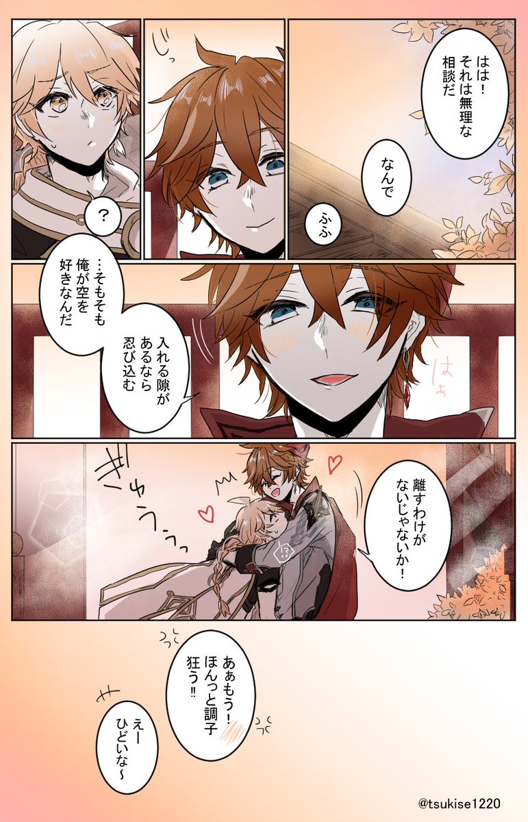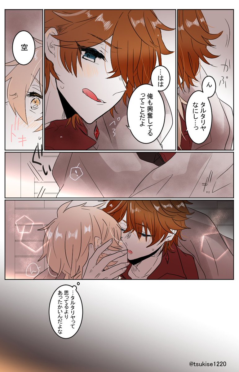 "熱"(タル空) こういうありきたりな雰囲気でいちゃらぶしちゃうの好きです、タルタリヤも空くんも可愛い