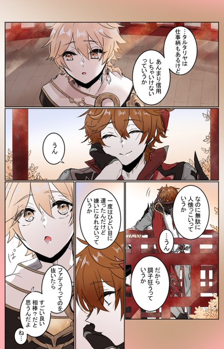 390 3222 "熱"(タル空) こういうありきたりな雰囲気でいちゃらぶしちゃうの好きです、タルタリヤも空くんも可愛い 22/03/05 08:38