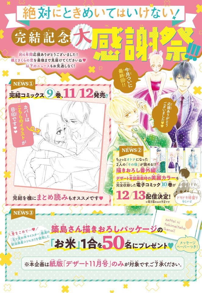 30 264 『絶対にときめいてはいけない!』完結記念に抽選で50名様にコシヒカリ1合が当たる企画してもらいました🍚🌈下記から応募してみて下さいね。詳しくは紙版のデザート11月号をご確認ください🙇♀️ 21/09/26 18:30