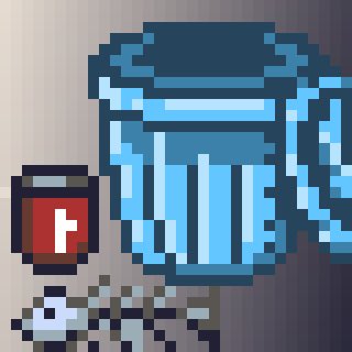 1 8 お題『ゴミ』 ゴミ袋だけに絞った方がよかったかも。 描く度に反省と発見があるね。これはコレで残しておこう。 #10分ドット #ドット絵 #pixelart 23/05/03 22:31
