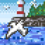 お題『港』 船を書こうか迷ったけど、まだそこまでの技術力が無いと判断して、灯台と海、かもめで表現してみました。 #10分ドット #ドット絵 #pixelart
