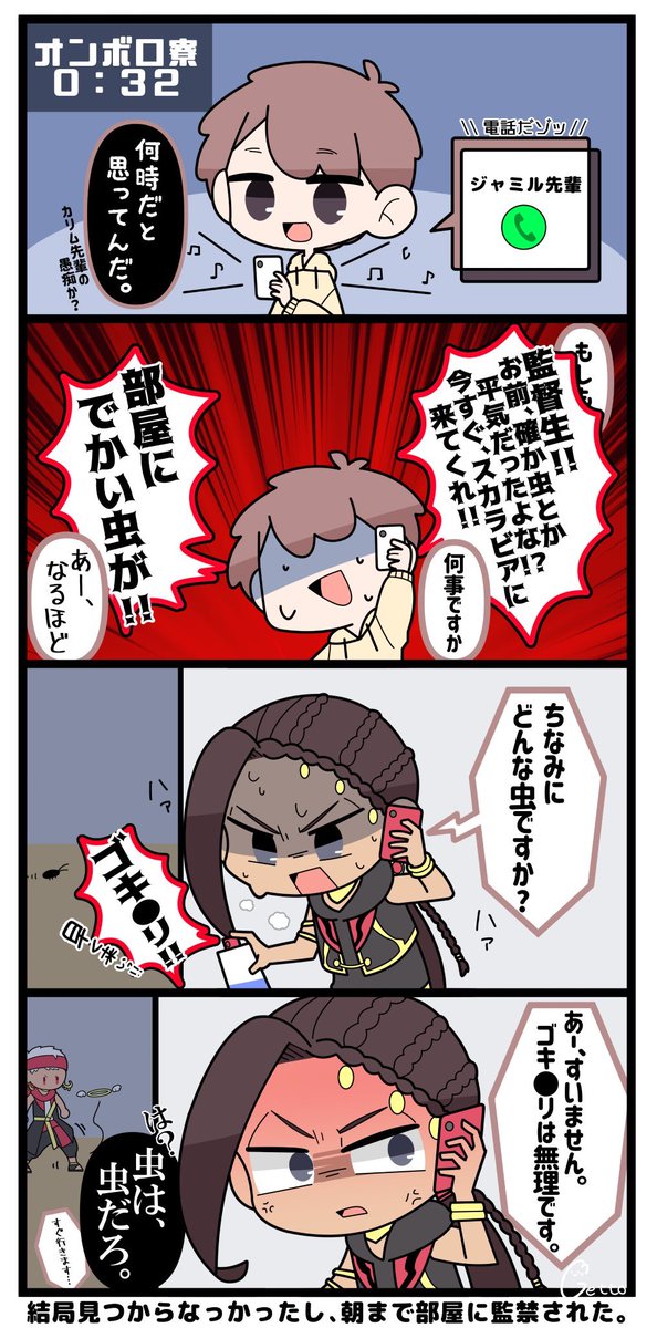 67 711 【ジャミ監】 ⚠️性別不明・顔あり監督生⚠️ ⚠️🐍→🌸・付き合ってない⚠️ ⚠️ユニーク魔法ネタバレ有り⚠️ ⚠️ノリとパッションしか無い⚠️ #twstプラス 🐍「帰ろう監督生。(スカラビアに」 🌸「ヒェ…」 20/08/30 01:59