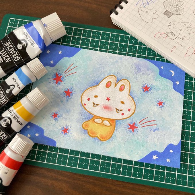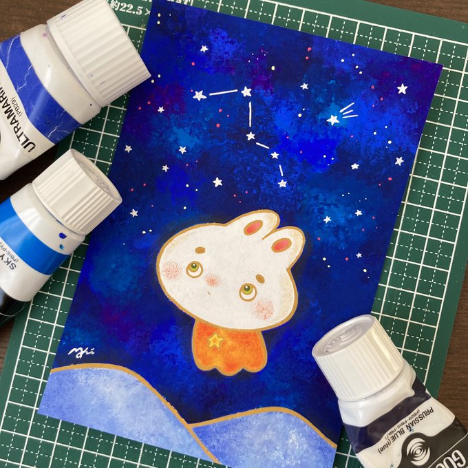 #TLを星いっぱいの天の川にしよう #イラスト #アクリルガッシュ #うさぎ