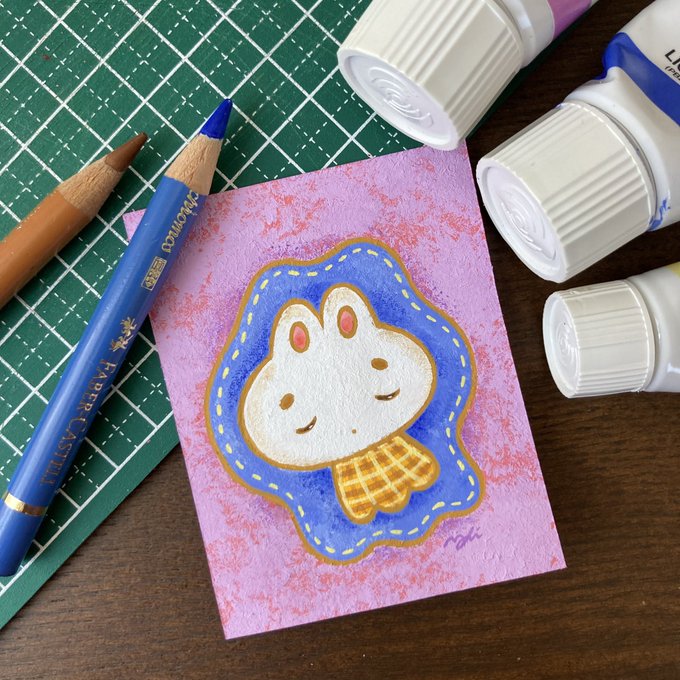 3 19 ✩ おやすみブローチ #イラスト #illustration #アクリルガッシュ #うさぎ 22/10/29 14:34