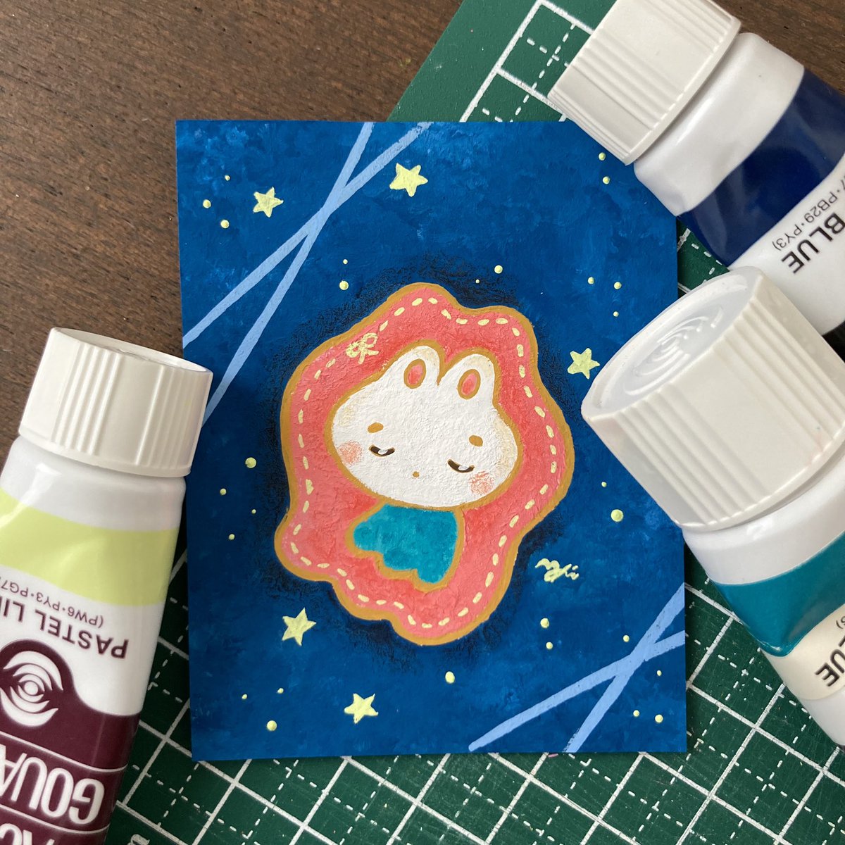 ✩ おやすみブローチ #イラスト #illustration #アクリルガッシュ #うさぎ