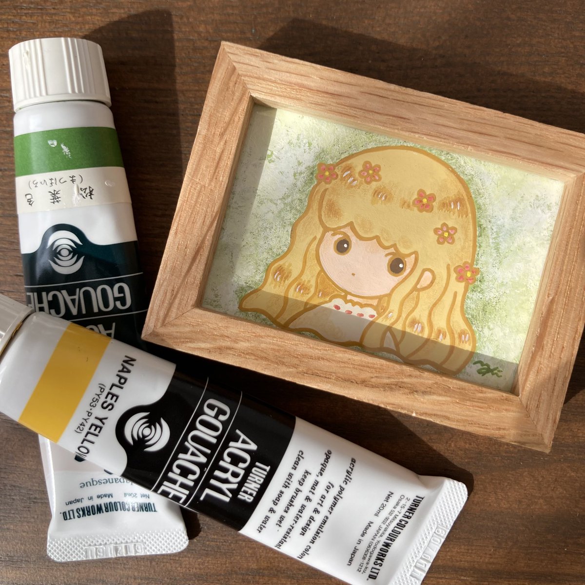 ミニ額かわいい🌼 #イラスト #illustration #アクリルガッシュ