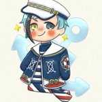 白音ちゃんの企画にお邪魔しました! 捏造夏服でステッカーシール風😊 アズール→ジェイド→フロイドの順ではだけ具合が変わっていくのがポイントです🤭💕💕 #twst_クールビズ企画 #ツイステファンアート